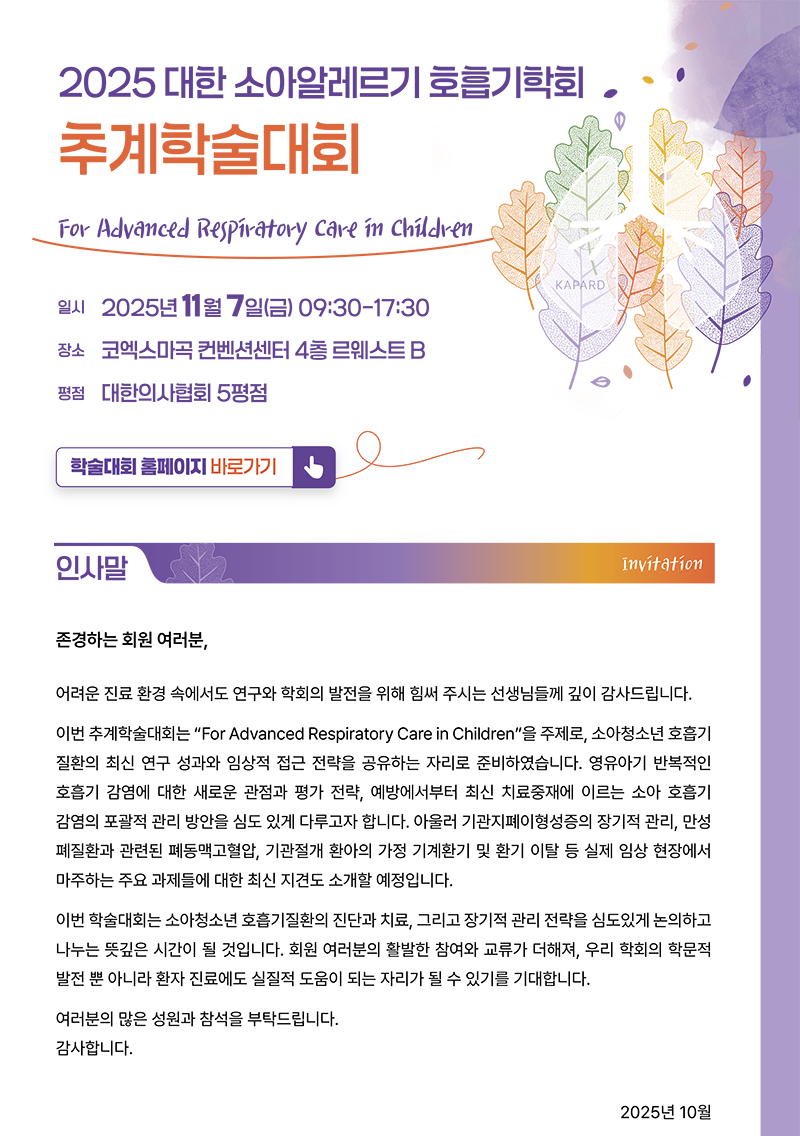 [등록 안내] 대한 소아알레르기 호흡기학회 2025년 추계학술대회