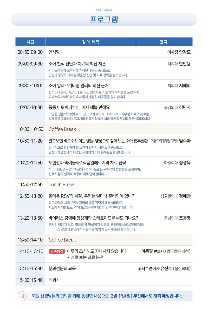 소알호) 제73회 소아알레르기 호흡기학 연수강좌
