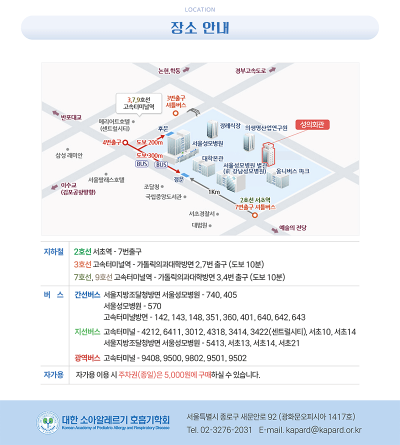 대한 소아알레르기 호흡기학회는 정보통신망법 제 50조의 2, 제50조의 7 등에 의거하여, 대한 소아알레르기 호흡기학회가 운영,관리하는 웹페이지상에서, 이메일 주소 수집 프로그램이나 그 밖의 기술적 장치 등을 이용하여 이메일 주소를 무단으로 수집하는 행위를 거부합니다.
