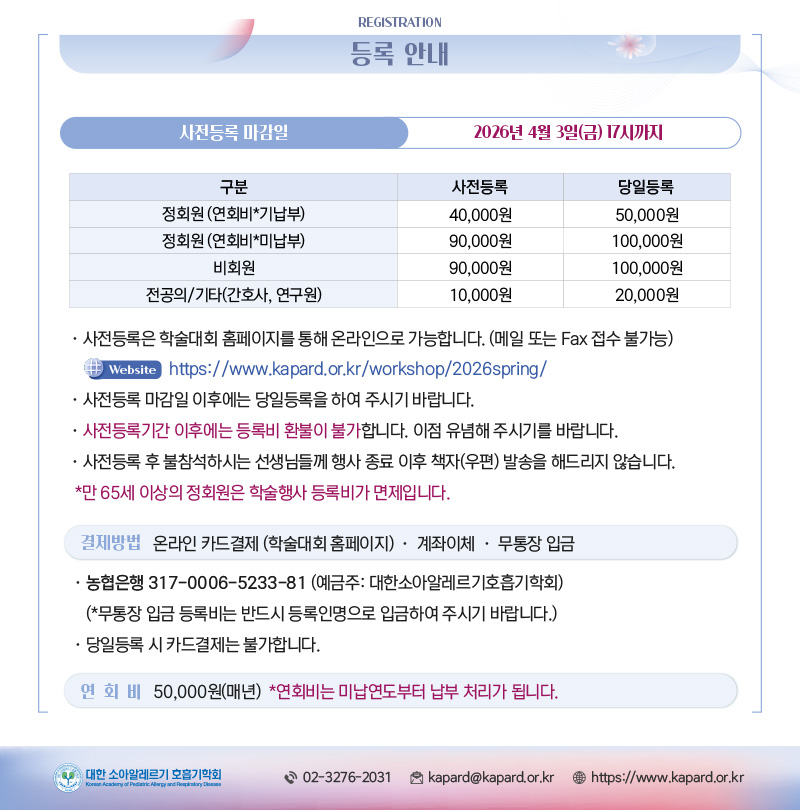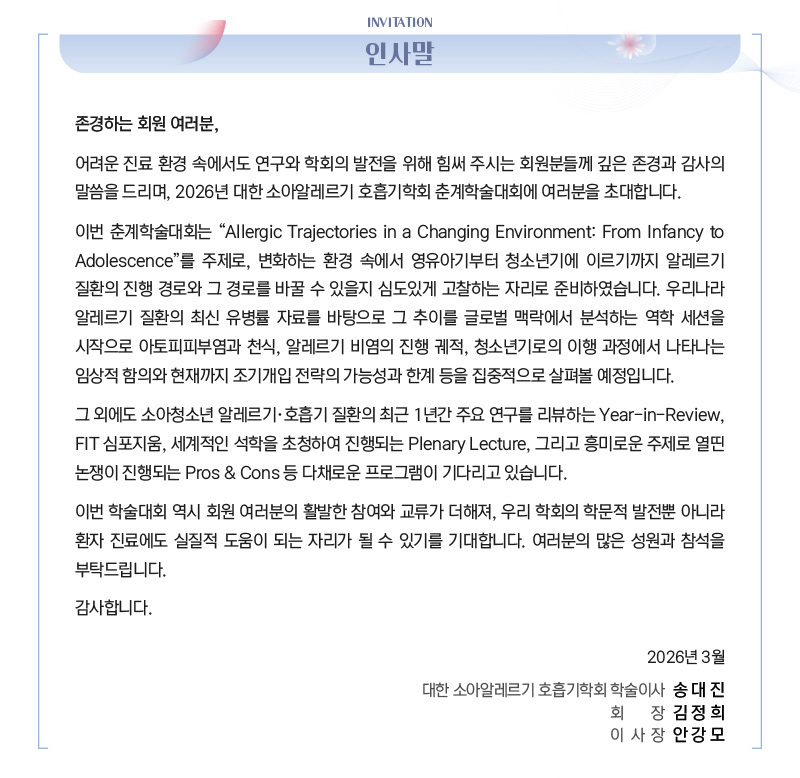 소알호) 2026 대한 소아알레르기 호흡기학회 춘계학술대회 개최 안내