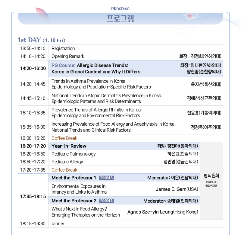 대한 소아알레르기 호흡기학회는 정보통신망법 제 50조의 2, 제50조의 7 등에 의거하여, 대한 소아알레르기 호흡기학회가 운영,관리하는 웹페이지상에서, 이메일 주소 수집 프로그램이나 그 밖의 기술적 장치 등을 이용하여 이메일 주소를 무단으로 수집하는 행위를 거부합니다.